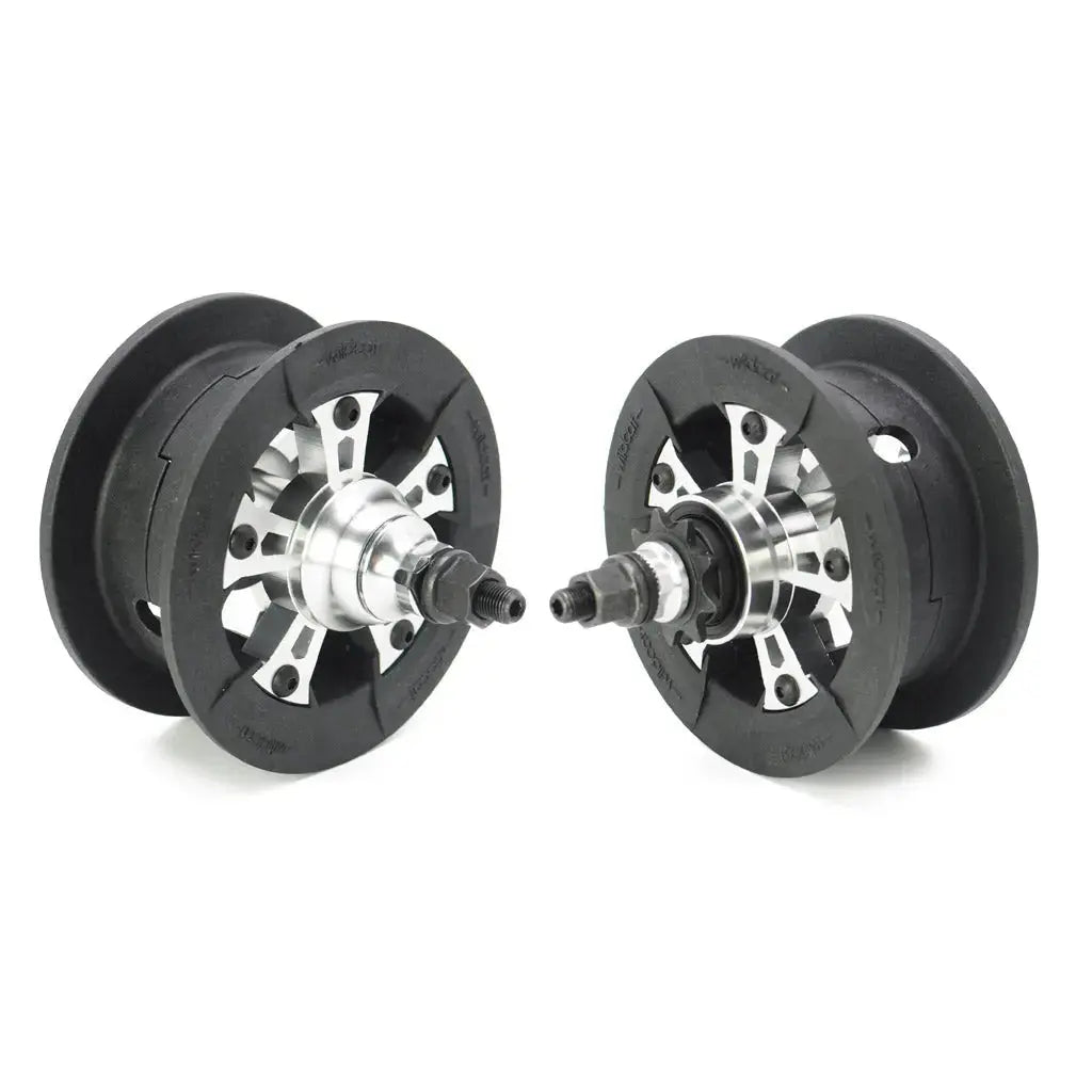 Wildcat has re-invented the wheel, seriously changing the Mini BMX game with the new patented Turbo wheel. The Turbo hub core is 100% aluminium forged and CNC tech making it stronger, truer and far lighter than anything else on the market. This new hub design rolls on an incredibly tough and light nylon rim, all held tight by an integrated lock system which as a bonus makes changing tyres a breeze.